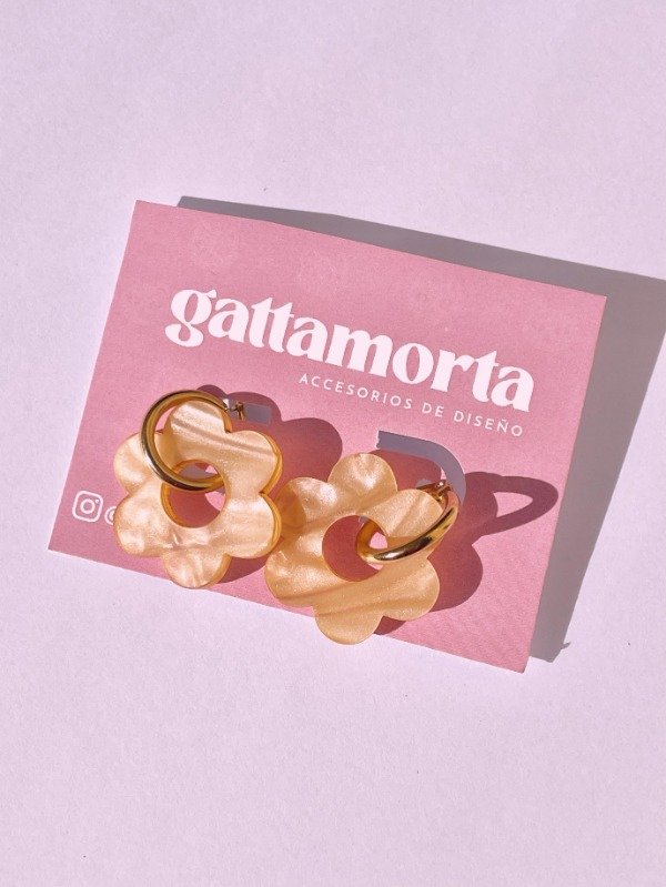 Aritos en acrílico amarillo marmolado con argollita dorada de acero quirúrgico, super livianos!